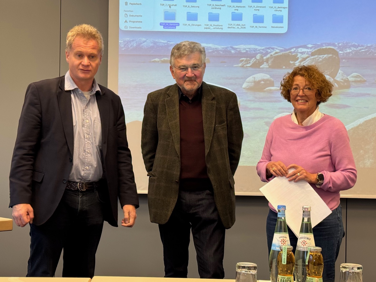 Die neuen Ehrenmitglieder des vhw mit dem Bundesvor- sitzenden (vlnr): Prof. Dr. Thorsten Köhler (Bundesvorsitzender des vhw), Prof. Willi Petter und Dr. Udo Rempe